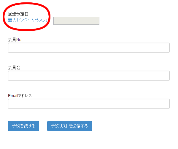 配達予定日は[カレンダーから入力]をクリックするとカレンダーが表示されますので、日にちを選んでクリックしてください。